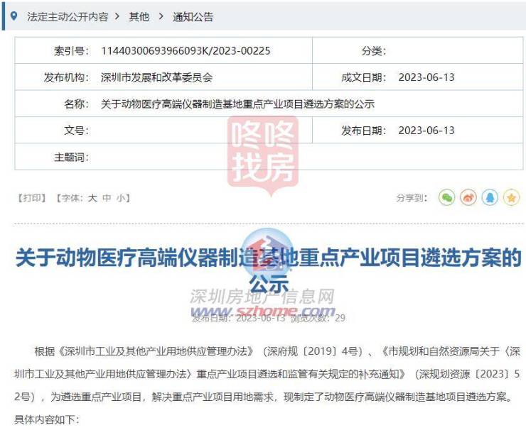 2023年6月,深圳市发展和改革委员会、深圳市龙华区人民政府发布《关于动物医疗高端仪器制造基地重点产业项目遴选方案的公示》,意向用地单位为深圳迈瑞动物医疗科技股份有限公司。