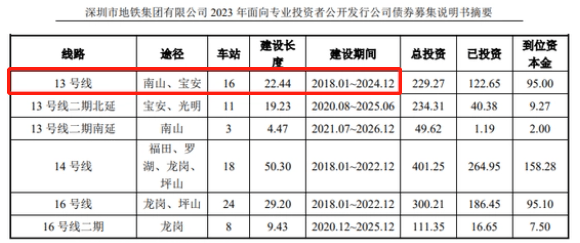 近日,深圳地铁发布《深圳市地铁集团有限公司 2023 年面向专业投资者公开发行公司债券募集说明书摘要》内容披露了深圳多条线路的通车时间。