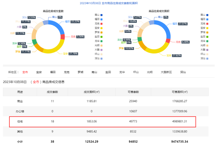 10月8日新房住宅共网签18套。宝安5套;福田4套;龙岗1套;罗湖2套;南山0套;盐田0套;龙华1套;坪山2套;光明2套;大鹏0套;深汕1套。