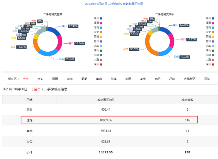 10月8日二手房住宅网签116套。宝安16套;福田20套;龙岗32套;罗湖5套;南山23套;盐田0套;龙华17套;光明2套;坪山1套;大鹏0套。