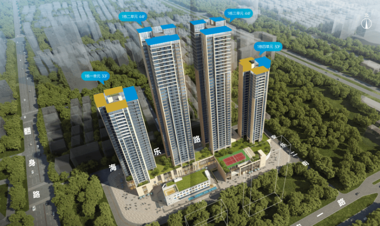 海乐华府占地面积约1.33万㎡,总建筑面积约11.7万m,其中住宅建面约6.9万㎡,配建有幼儿园及社区公共配套,容积率6.3。
