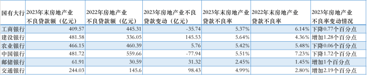 2023年国有大行房地产业贷款资产质量情况