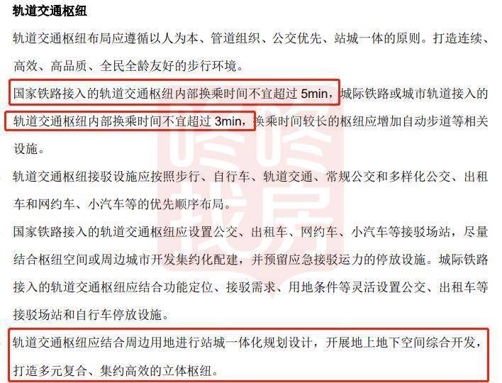 国家铁路接入的轨道交通枢纽内部换乘时间不宜超过 5min,城际铁路或城市轨道接入的 轨道交通枢纽内部换乘时间不宜超过 3min,换乘时间较长的枢纽应增加自动步道等相关设施。