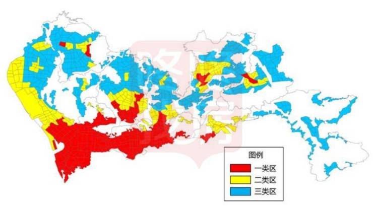 深圳市停车供应分区分为一类区(红色部分)、二类区、三类区。