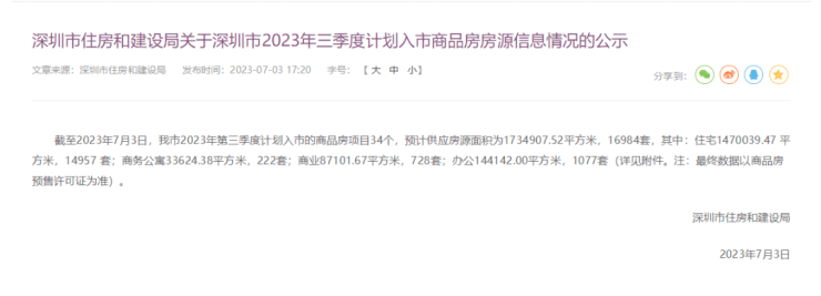 7月3日,深圳住建局官方发布三季度计划入市清单。