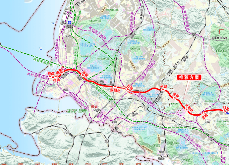 线路设计时速160km,全线设地下站11座,分别为前保站、怡海站、鲤鱼门站、西丽站、深圳北站、五和站、平湖站、凤岗站、大运北站、龙城站、坪地站。