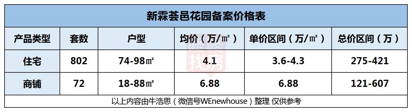 均价4.1万/㎡推802套 新霖荟邑花园获批预售
