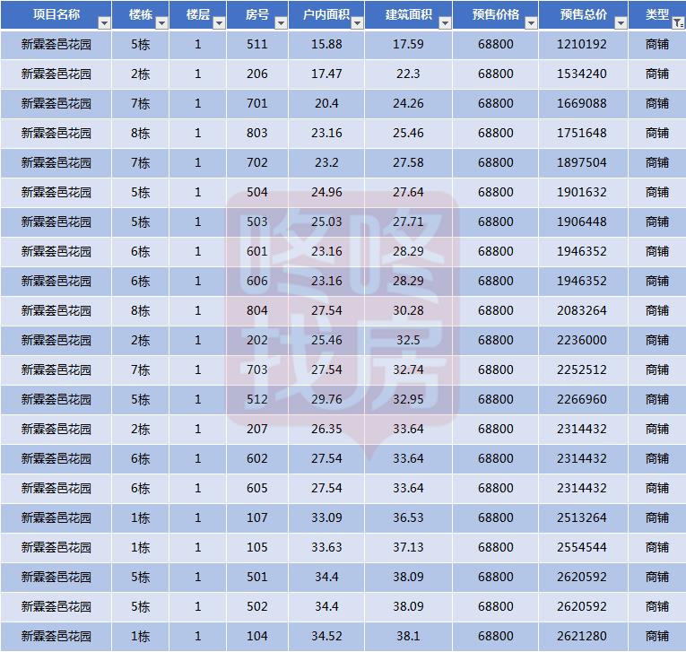 商铺建面约18-88㎡,均价约6.88万/㎡,单价均为6.88万/㎡,总价区间在121-607万/套。
