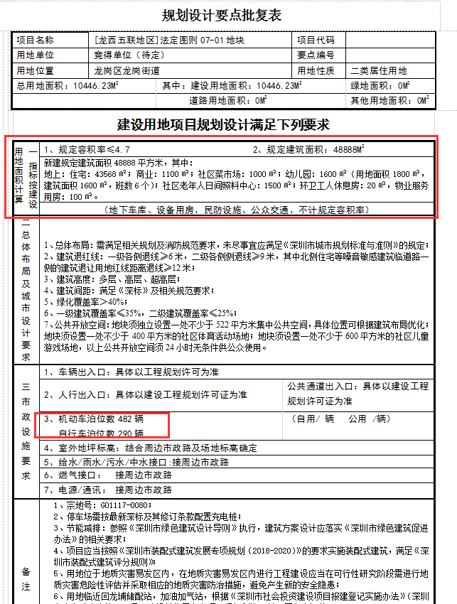 根据规划显示,项目土地面积10446.23平方米,建面48888平方米,其中住宅43568平方米,商业1100平方米,幼儿中心1600㎡(6班),规划机动车位482辆。