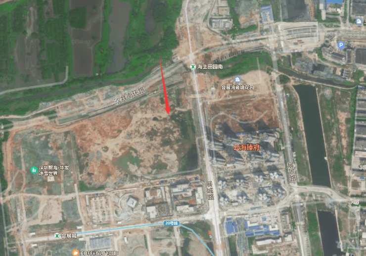 该地块位于沙井南环路与展城路交汇处西南侧,位于12号线海上田园南站地铁口。地块东侧是在售的会展湾雍境花园,而本地块也被视作会展湾雍境花园的二期。