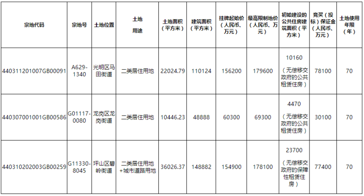 位于宝安沙井A301-0602宗地吸引了招商、华润等6家房企竞价,该地块一开始表现平平无奇,进入后期保利和招商开始你追我赶,经过19轮报价后达封顶价,进入竞企业自持的保障性租赁住房面积阶段。一开始由招商、保利胶着,随后海信加入“战局”与招商升级竞价,经过43轮“竞价”后,招商一举触顶。随后招商、海信进入摇号环节,最终花落招商,成交价为22.18亿+竞配20250㎡