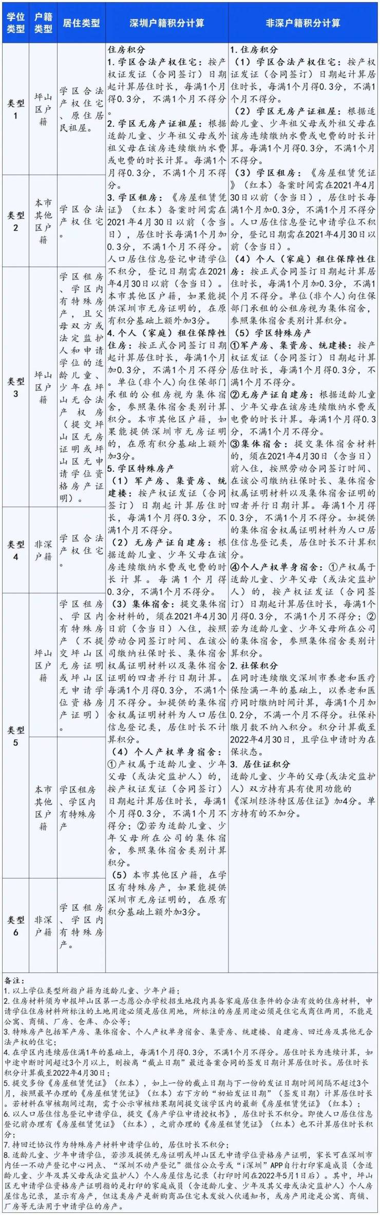 深圳户籍和非深圳户籍儿童、少年,均在划分学位类型的基础上,根据不同类型积分项目得分情况合计积分。