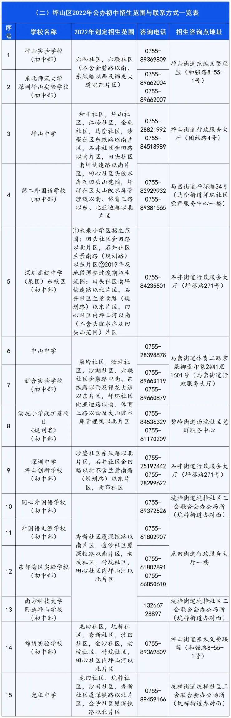 自2022年起,坪山区不具备跨区招生条件的民办学校一律不得招收非坪山区居住的适龄儿童、少年。2022年秋季民办学校招生将验核适龄儿童、少年父母(或法定监护人)的人口居住信息,填报民办学校的人口居住信息登记必须在2022年5月29日前(含当日)完成。