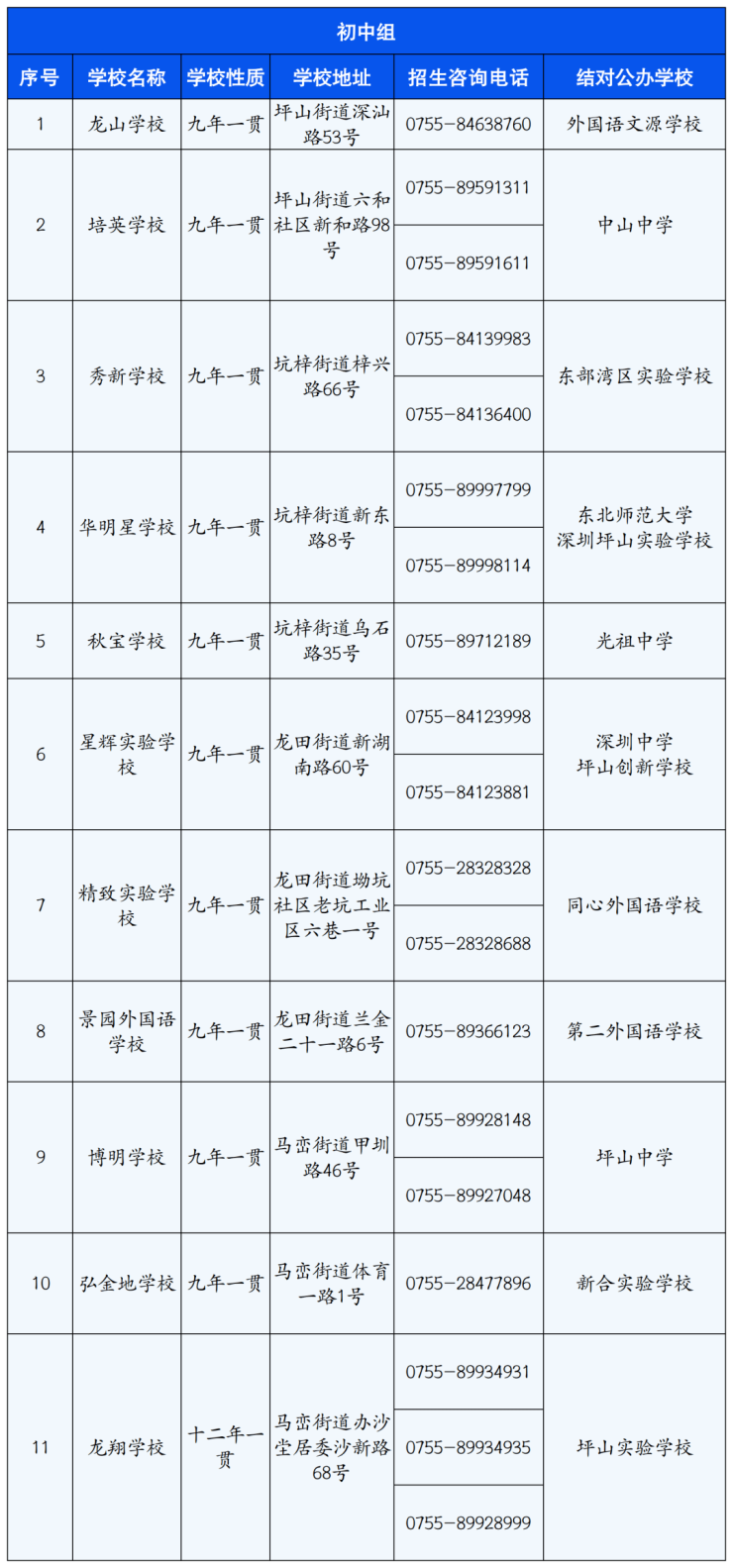 ③同心外国语学校、外国语文源学校、东部湾区实验学校、南方科技大学附属坪山学校、锦绣实验学校组成大学区;