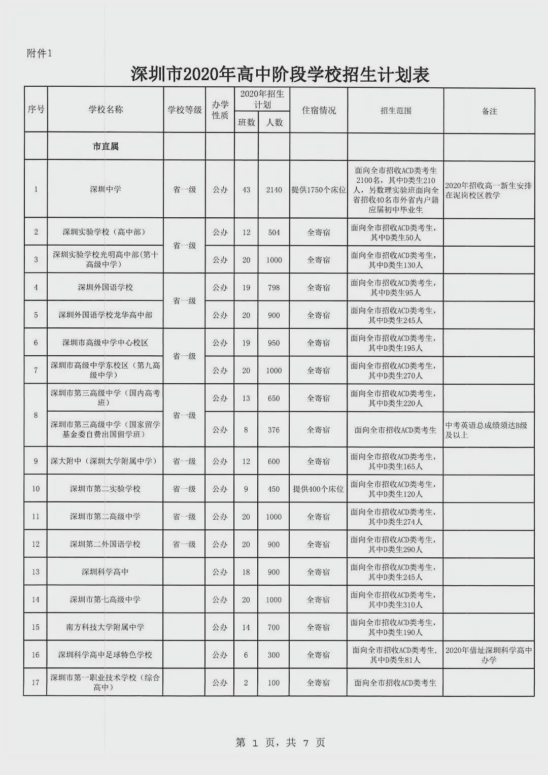 深圳中学泥岗校区建成投入使用后,深圳中学2020年高一招生计划达2140人,较2019年增加1340人。