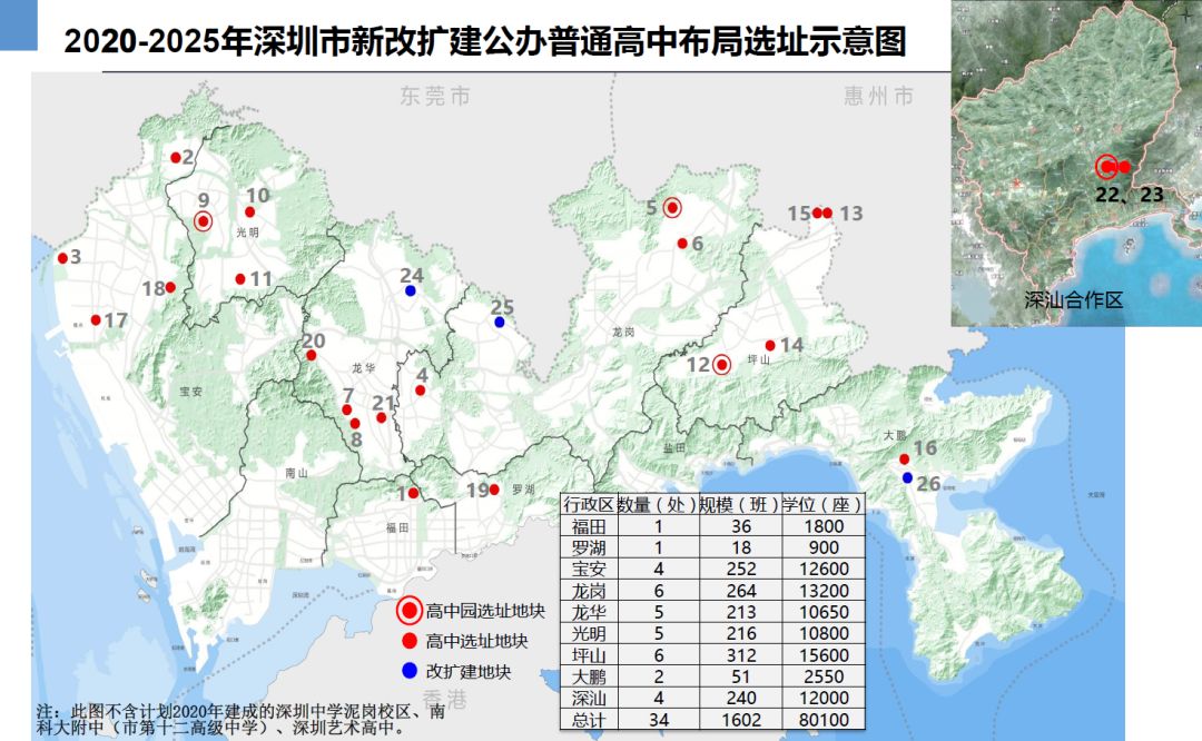 为切实回应市民对高中学位的关注和需求,深圳市政府于2019年末出台《深圳市高中学校建设方案(2020-2025年)》(以下简称《方案》),将高中建设纳入民生重大工程,强力推进。