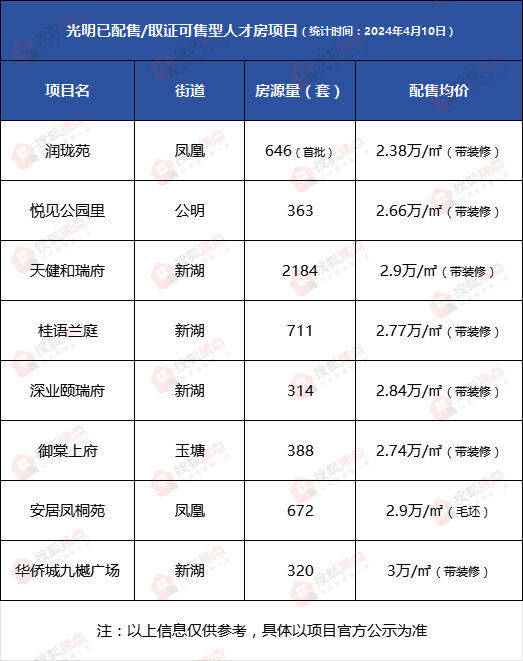 光明可售型人才房润珑苑首批房源获批预售证,预计将于近期配售。