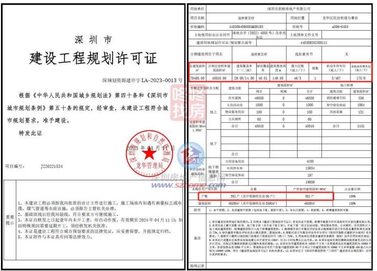 项目规划建设为一栋超高层住宅,分为2个单元,其中一个单元为45层,另一个单元为46层,总户数为552户,其中86户为保障性住房。