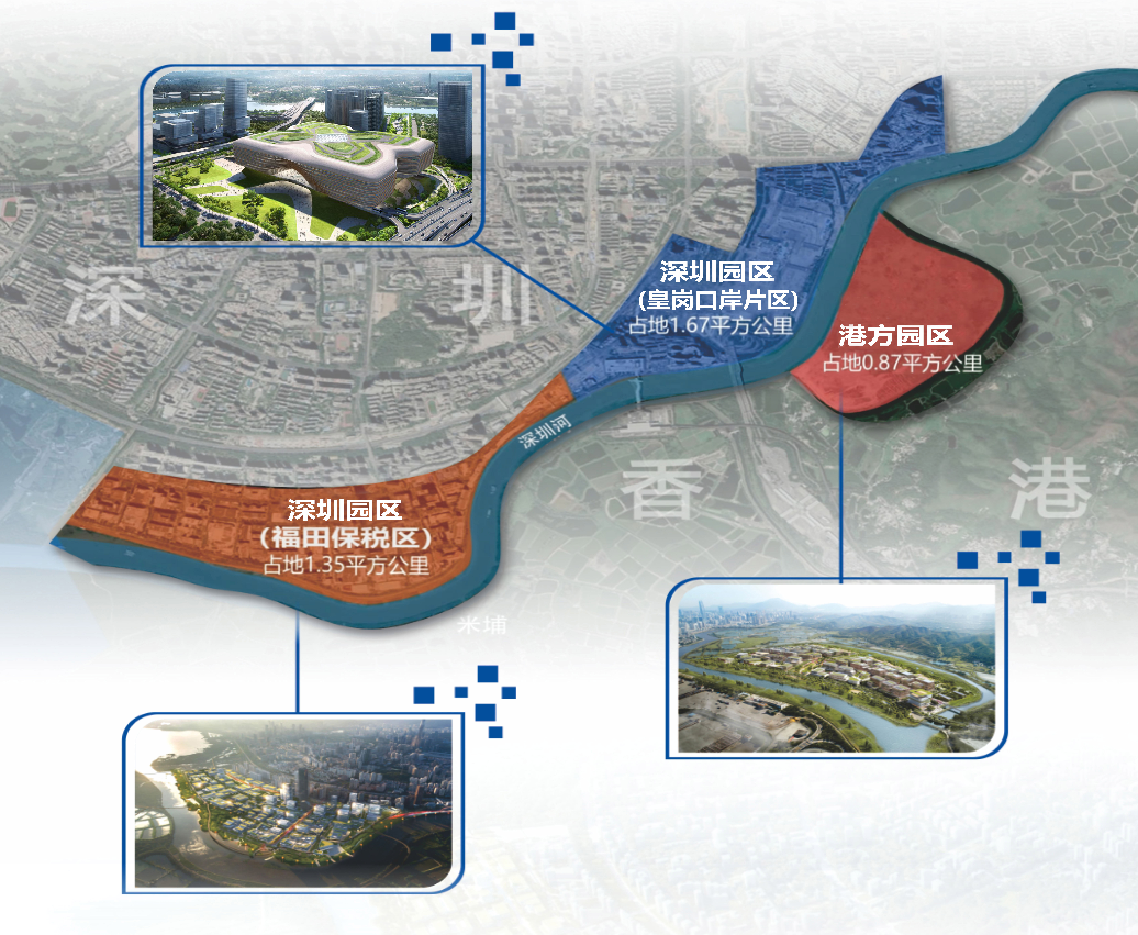 辐射带包括向西串联莲塘-香园围口岸、文锦渡口岸、罗湖口岸等重要节点形成口岸经济带,以及沿沙头角湾-大鹏湾大亚湾海岸线,辐射香港新界沿海区域和岛屿、大鹏半岛、惠州和深汕特别合作区形成东部黄金海岸带。