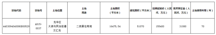 龙华A815-0036地块、A815-0037两宗地的起拍价分别是19.06亿元、15.54亿元,合计共34.6亿元。