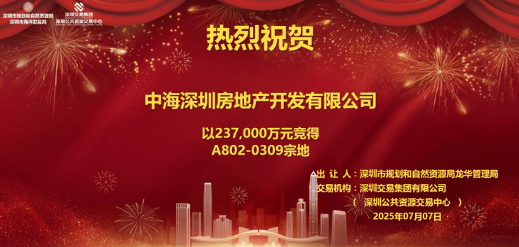 刚刚!中海23.7亿拿下梅林关宅地,溢价率超40%