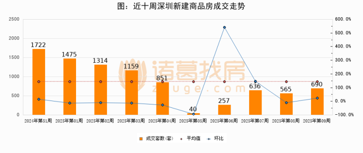 进入2025年第09周(02月24日-03月02日),深圳新建商品房成交690套,较上周增加125套,环比上涨22.1%