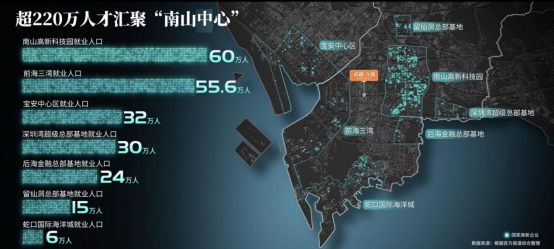 在科技产业强势发展的基础上,南山构建了约30公里级总部经济轴带,大量优质的工作机会汇聚了一众高净值人才。南山中心作为南山未来十大重点发展片区的产业和人口的接口,承接十大片区的规划利好驱动和这一庞大高净值人群的居住需求。