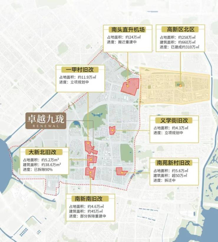 接下来,南山中心将会接连落地多宗旧改项目,如,同样由卓越操刀的大新南村城市更新旧改项目目前处于专规申报阶段;周边还有南头直升机场项目、一甲村旧改、高新区北区项目、大新北旧改等多个项目。未来旧改完成后,城市界面、居住氛围等都将得到质变级的提升,推动南山中心蝶变升级。