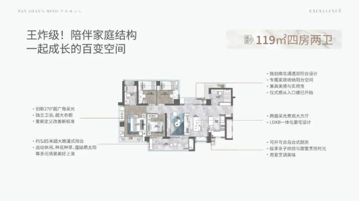 对面市场上核心区域动辄以建面约100㎡以上大户型供应为主,在房价高企的当下着实让购房者压力陡增,部分南山主义被迫“逃离”或观望。为了解决这一置业困境,卓越九珑差异化打造建面约83㎡、97㎡、119㎡的舒居3-4房稀缺产品,面面俱到的考虑各层次刚需/刚改购房群体的入手门槛。