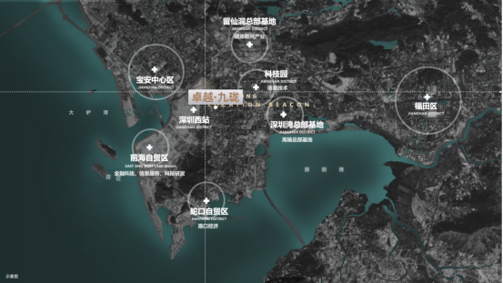 在深圳地图上可以看到,南山中心周边环绕前海自贸区、高新科技园、留仙洞总部基地、深圳湾总部基地等现阶段重点产业发展板块,其地理位置正好处在各大区域的几何中心位置。换而言之,从南山中心出发,可以快速高效抵达南山各大核心板块,十大板块的发展也将“反哺”南山中心。