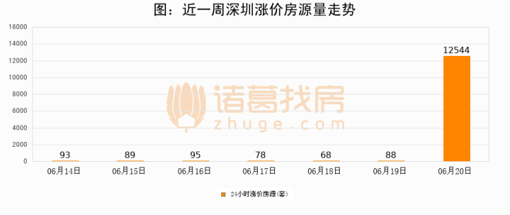 根据诸葛找房数据显示,深圳24小时涨价房源量为12544套,较06月19日增加12456套,环比上涨14154.5%。与此同时,涨价房源占比小幅扩大,业主信心有所提升。