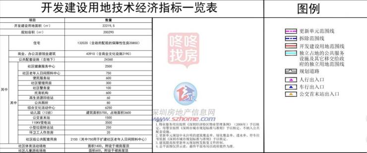 更新单元用地面积47189.0平方米,开发建设用地22219.5平方米(其中220.5平方米国有未出让的零星用地按照城市更新办法及其实施细则一并出让给项目实施主体)。规划容积为200290平方米,其中住宅132020平方米(含政府配租的保障性住房20850平方米)。