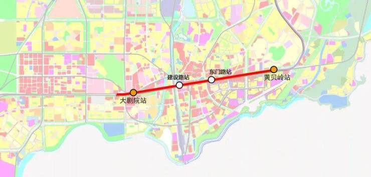 三期工程的5号线西延线起自目前5号线终点站黄贝岭站,终至大剧院站,线路全长2.88公里。线路共设3座车站:东门路站、建设路站、大剧院站。其中,大剧院站可与地铁1号线、2号线换乘。建成后,市民搭乘5号线无需再换乘2号线,便可直达大剧院站等商圈,可进一步改善黄贝岭站的早晚高峰状况。