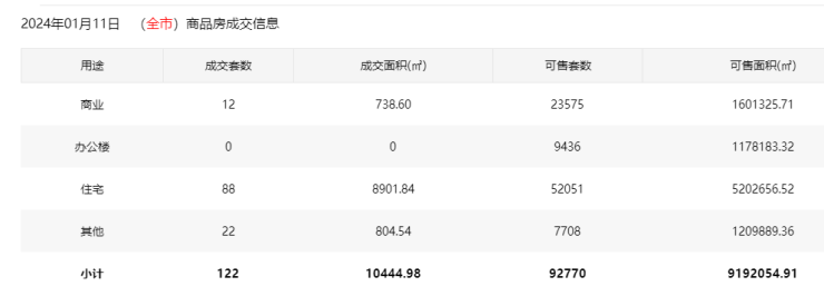 2024年1月11日新房住宅共网签88套。宝安18套;福田9套;龙岗15套;罗湖5套;南山7套;盐田0套;龙华21套;坪山5套;光明7套;大鹏0套;深汕1套。