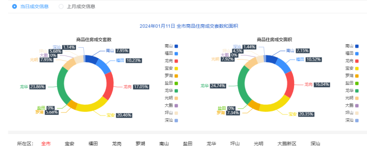 2024年1月11日新房住宅共网签88套。宝安18套;福田9套;龙岗15套;罗湖5套;南山7套;盐田0套;龙华21套;坪山5套;光明7套;大鹏0套;深汕1套。2024年1月11日二手房住宅网签173套。宝安2…