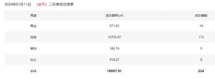 2024年1月11日二手房住宅网签173套。宝安26套;福田26套;龙岗40套;罗湖26套;南山28套;盐田3套;龙华15套;光明3套;坪山4套;大鹏2套。