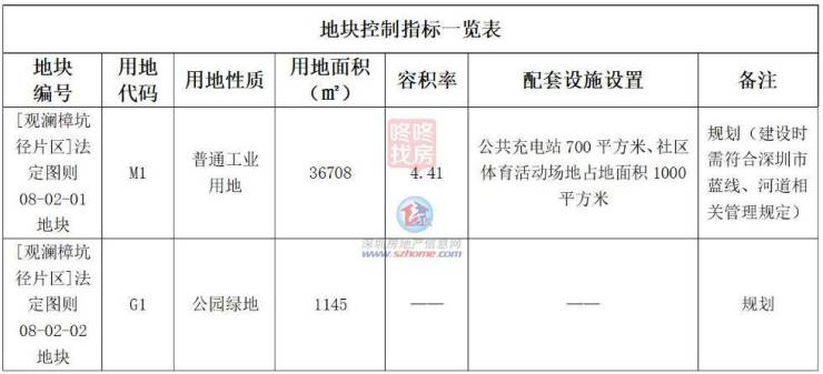 调整后,观澜东地区14-14-02为二类居住用地,用地面积15123.5平方米,容积率4.7,建面7.1万平;观澜樟坑径片区08-02调整为两小块地块,一块为普通工业用地,用地面积36708平,容积率4.41,建面约16.2万平;一块为公园绿地,用地面积1145平。