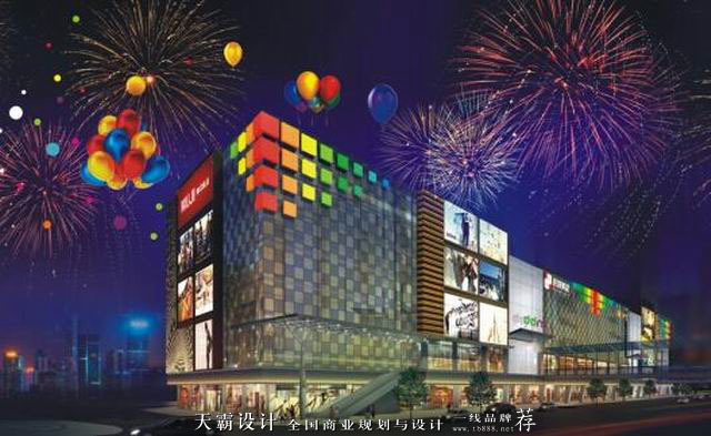 DDM mall,前身为原来的深圳百货广场。作为一个旧场改造的商业项目,由于建筑自身硬件条件限制,如何通过设计提升时尚度成为DDM mall设计团队头疼的问题。设计师们根据精准的市场定位,在外立面上的处理上,为两侧的玻璃幕墙各引进了24个七彩形象灯,可在夜色中随机变换各种色彩,为周边陈旧的各类城市建筑增添了一抹绚丽。在原瓷砖幕墙上,设计师团队请来世界著名的法国后现代绘画大师,从5楼至G层,6幅巨幕后现代涂鸦作品快速成型,为DDM mall带来了优质的年轻范儿。
