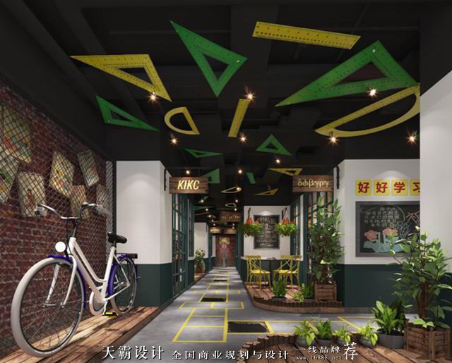 叮梆小镇面积达5000㎡,纵跨三个楼层,小中庭以匠人象征的“铁锤”造型打造个性IP,在店铺与空间利用,景观小品等设计十分靓眼。如停留在墙边的单车,缓缓驶来的绿皮列车、造型新颖的雕塑,学校教室里的黑板报、小镇风味的电话亭、街边休息座椅等。叮梆小镇走年轻化路线、偏小资情调,因此项目其他业态规划时,会根据每个楼层主题街区不同特点进行优化组合。