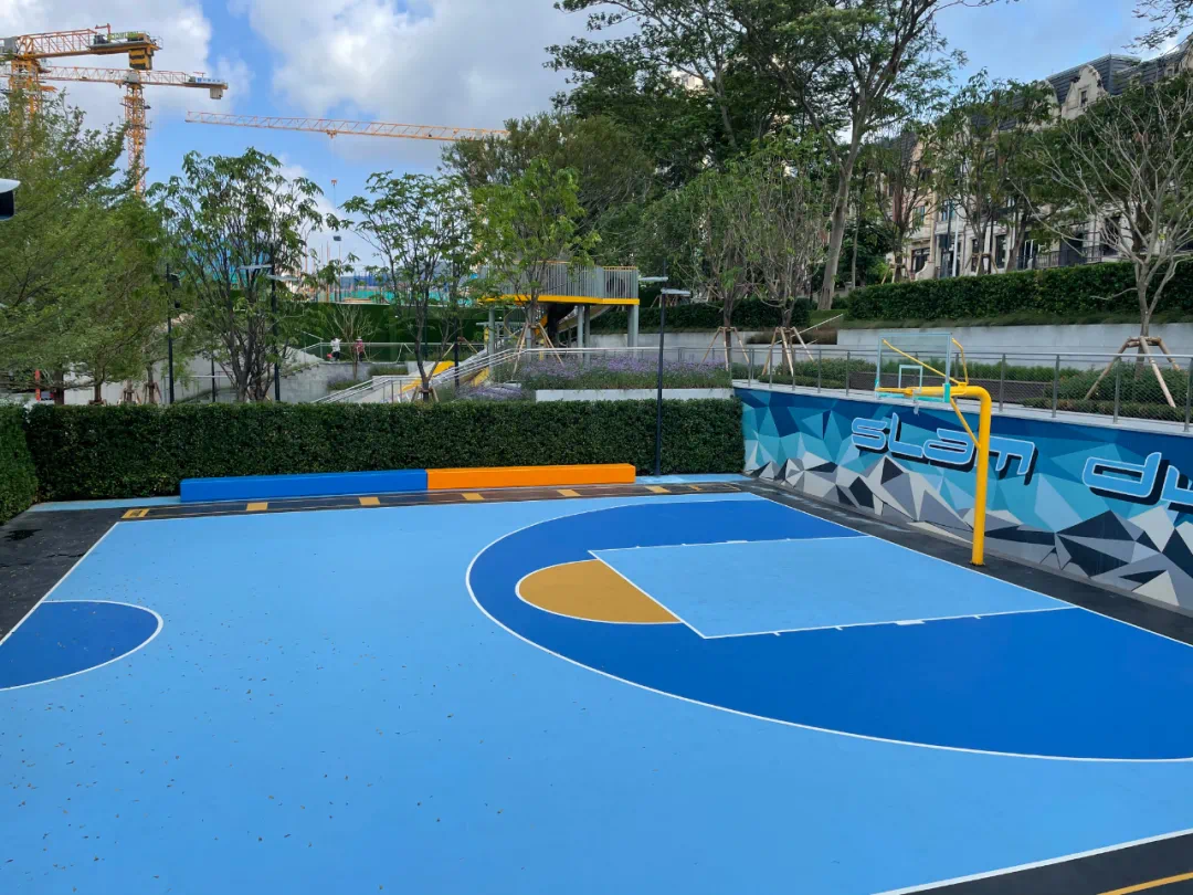 一出车库,明显感受到这边的节奏慢下来,空气都新鲜很多。首先看到了一个大公园,跟传统公园做法相比,公园实用性很强,采用开放公园场景的形式,超大可步入的阳光草坪,周末约下朋友一起野餐聊聊天,也是不错的选择。还配置了篮球场、阶梯剧场、儿童活动设施等多个功能设施。当别的开发商在卖楼阶段给客户画饼的时候,万科就直接把公园建好了,现在就是交付给业主提前享用。