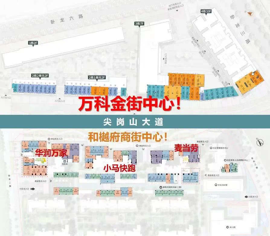 住宅是6月20日就线上开盘,现在售楼处到处都是商铺的销售信息,展板图,单页图,一页纸…估计是西部现在这么热,住宅不愁卖吧。对面的越秀现在也在卖商铺,简直是两家打擂台的节奏。不过其实万科跟越秀可以好好聊聊,拿了这2家的商铺图,放一起,像拼出藏宝图一样,在尖岗山大道一北一南,规模超过3万多平米了,完全是一个区域级的街区式商业中心。