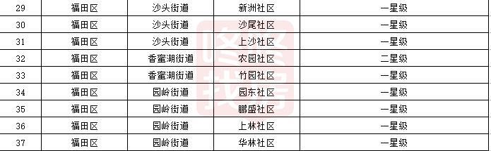 共37个社区入选,包括益田社区、皇岗社区、福民社区、上梅社区、沙嘴社区等;