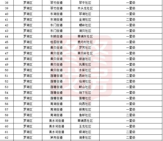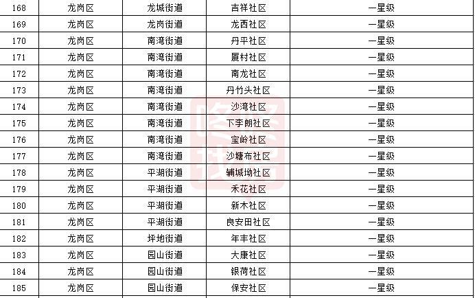 48个社区入选,包括岗头社区、第五园社区、布吉社区、大芬社区等;