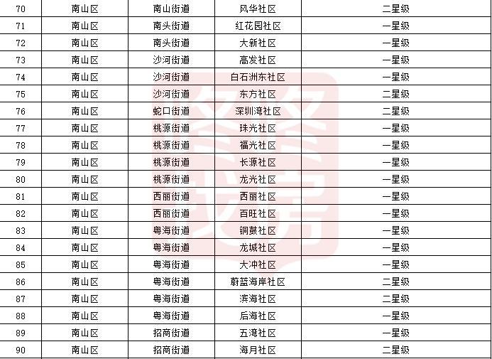 除此之外,南山区的二星级社区中出现了深圳湾社区、滨海社区、以及海月社区等。