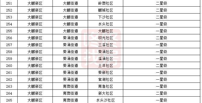 15个社区入选,包括大鹏社区、葵涌社区、官湖社区等;