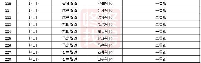 共9个社区入选,包括坑梓社区、马峦社区、田头社区等;