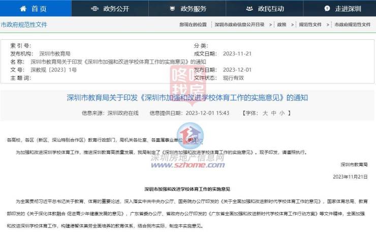 近日,深圳市教育局印发《深圳市加强和改进学校体育工作的实施意见》(以下简称意见)。