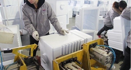 电冰箱与电冰柜的箱体内胆,多采用工程塑料ABS板或PS板制造。ABS板呈白色、奶黄色等,在光泽、强度、耐久性和抗化学性都比PS板好些。