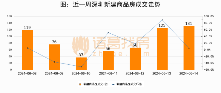 【深圳成交日报】06月14日新房成交131套、二手房264套;涨价房源93套