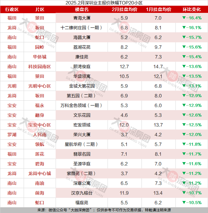 今天继续和咖姐来看深圳2月房价变化数据。